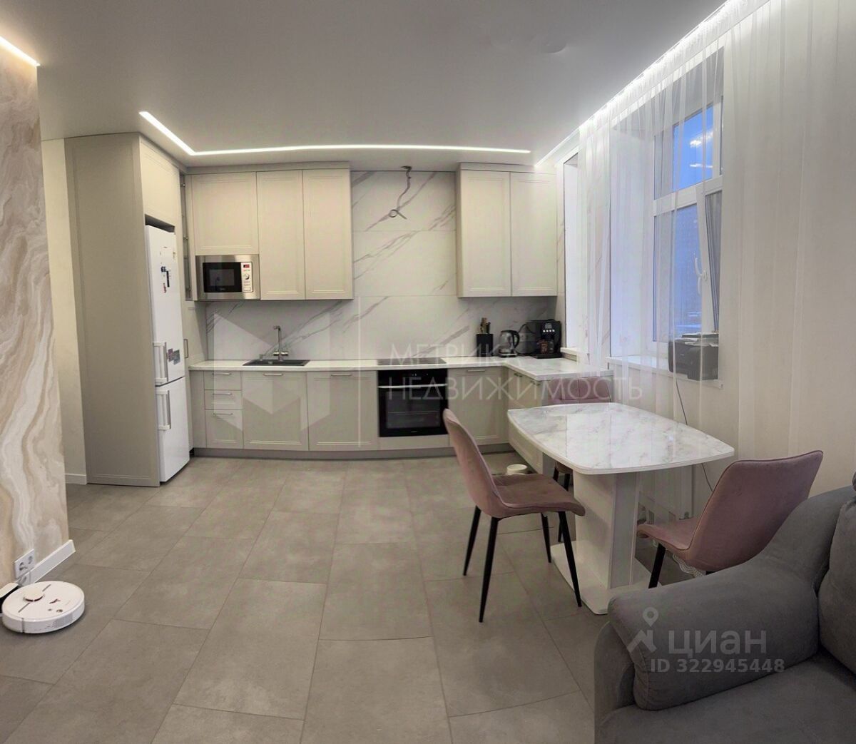Большая просторная квартира площадью 74,22 м² с большой кухней-гостиной 25 м², просторными комнатами и 2 санузлами.
