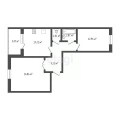 В квартире хороший современный ремонт. Мебель и техника остаются по договоренности. Качественная отделка включает в себя: обои под покраску, ламинат; входная стальная дверь и современные межкомнатные двери; в ванной комнате плитка на полу и стенах, новая сантехника, большая ванна. Просторные комнаты 16,86 кв.м. и 12,96кв.м квадратной формы на разные стороны света. Из кухни 13,21 кв.м. выход на лоджию 3,47кв.м. с панорамным остеклением.