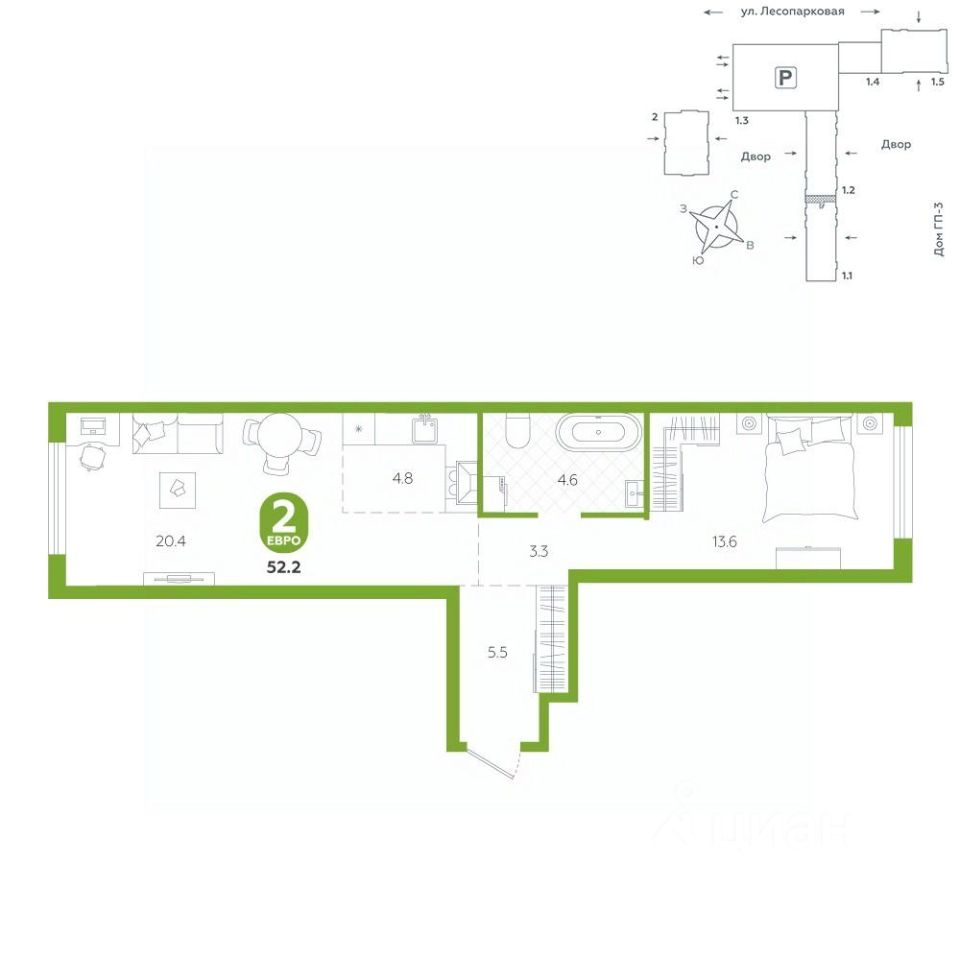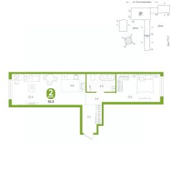 площадь квартиры - 52,2 кв.мГармоничные пропорции и большие окна наполняют пространство светом, создавая уютную атмосферу. Умное зонирование позволяет удобно организовать как рабочую, так и жилую зоны, что особенно важно для современных жителей. Санузел спроектирован с учетом всех потребностей: здесь есть ванна и место для стиральной машины. Каждый метр квартиры используется с максимальной эффективностью, что делает эту планировку отличным выбором для тех, кто ценит комфорт и удобство.