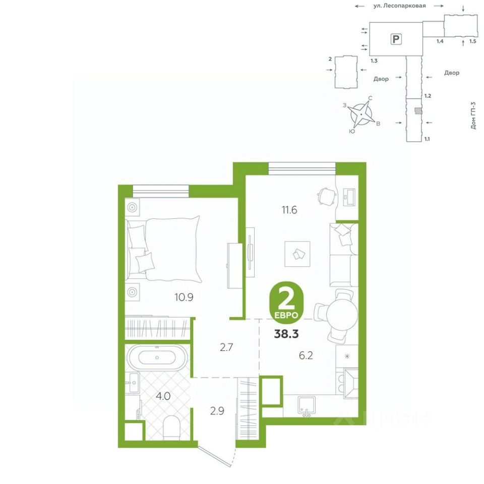 площадь квартиры - 38,3 кв.мГармоничные пропорции и большие окна наполняют пространство светом, создавая уютную атмосферу. Умное зонирование позволяет удобно организовать как рабочую, так и жилую зоны, что особенно важно для современных жителей. Санузел спроектирован с учетом всех потребностей: здесь есть ванна и место для стиральной машины. Каждый метр квартиры используется с максимальной эффективностью, что делает эту планировку отличным выбором для тех, кто ценит комфорт и удобство.