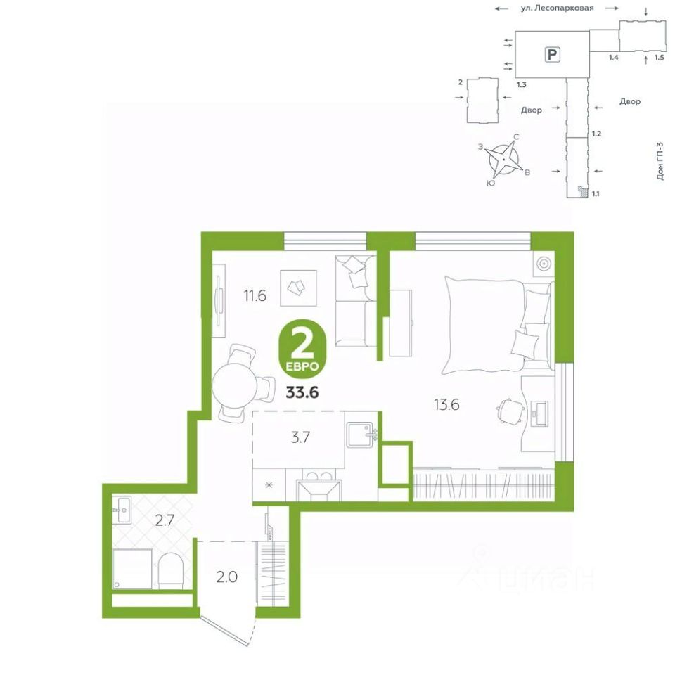 площадь квартиры - 33,6 кв.мГармоничные пропорции и большие окна наполняют пространство светом, создавая уютную атмосферу. Умное зонирование позволяет удобно организовать как рабочую, так и жилую зоны, что особенно важно для современных жителей. Санузел спроектирован с учетом всех потребностей: здесь есть ванна и место для стиральной машины. Каждый метр квартиры используется с максимальной эффективностью, что делает эту планировку отличным выбором для тех, кто ценит комфорт и удобство.