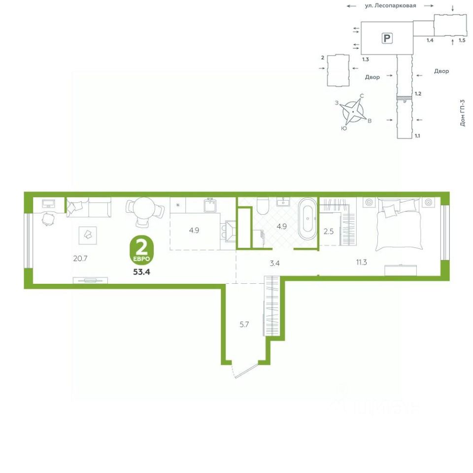 площадь квартиры - 53,4 кв.мГармоничные пропорции и большие окна наполняют пространство светом, создавая уютную атмосферу. Умное зонирование позволяет удобно организовать как рабочую, так и жилую зоны, что особенно важно для современных жителей. Санузел спроектирован с учетом всех потребностей: здесь есть ванна и место для стиральной машины. Каждый метр квартиры используется с максимальной эффективностью, что делает эту планировку отличным выбором для тех, кто ценит комфорт и удобство.