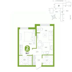 площадь квартиры - 38,7 кв.мГармоничные пропорции и большие окна наполняют пространство светом, создавая уютную атмосферу. Умное зонирование позволяет удобно организовать как рабочую, так и жилую зоны, что особенно важно для современных жителей. Санузел спроектирован с учетом всех потребностей: здесь есть ванна и место для стиральной машины. Каждый метр квартиры используется с максимальной эффективностью, что делает эту планировку отличным выбором для тех, кто ценит комфорт и удобство.