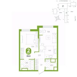 площадь квартиры - 39 кв.мГармоничные пропорции и большие окна наполняют пространство светом, создавая уютную атмосферу. Умное зонирование позволяет удобно организовать как рабочую, так и жилую зоны, что особенно важно для современных жителей. Санузел спроектирован с учетом всех потребностей: здесь есть ванна и место для стиральной машины. Каждый метр квартиры используется с максимальной эффективностью, что делает эту планировку отличным выбором для тех, кто ценит комфорт и удобство.