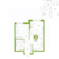 площадь квартиры - 37,4 кв.мГармоничные пропорции и большие окна наполняют пространство светом, создавая уютную атмосферу. Умное зонирование позволяет удобно организовать как рабочую, так и жилую зоны, что особенно важно для современных жителей. Санузел спроектирован с учетом всех потребностей: здесь есть ванна и место для стиральной машины. Каждый метр квартиры используется с максимальной эффективностью, что делает эту планировку отличным выбором для тех, кто ценит комфорт и удобство.