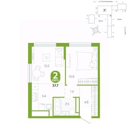 площадь квартиры - 37,7 кв.мГармоничные пропорции и большие окна наполняют пространство светом, создавая уютную атмосферу. Умное зонирование позволяет удобно организовать как рабочую, так и жилую зоны, что особенно важно для современных жителей. Санузел спроектирован с учетом всех потребностей: здесь есть ванна и место для стиральной машины. Каждый метр квартиры используется с максимальной эффективностью, что делает эту планировку отличным выбором для тех, кто ценит комфорт и удобство.