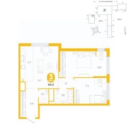 площадь квартиры - 64,2 кв.м