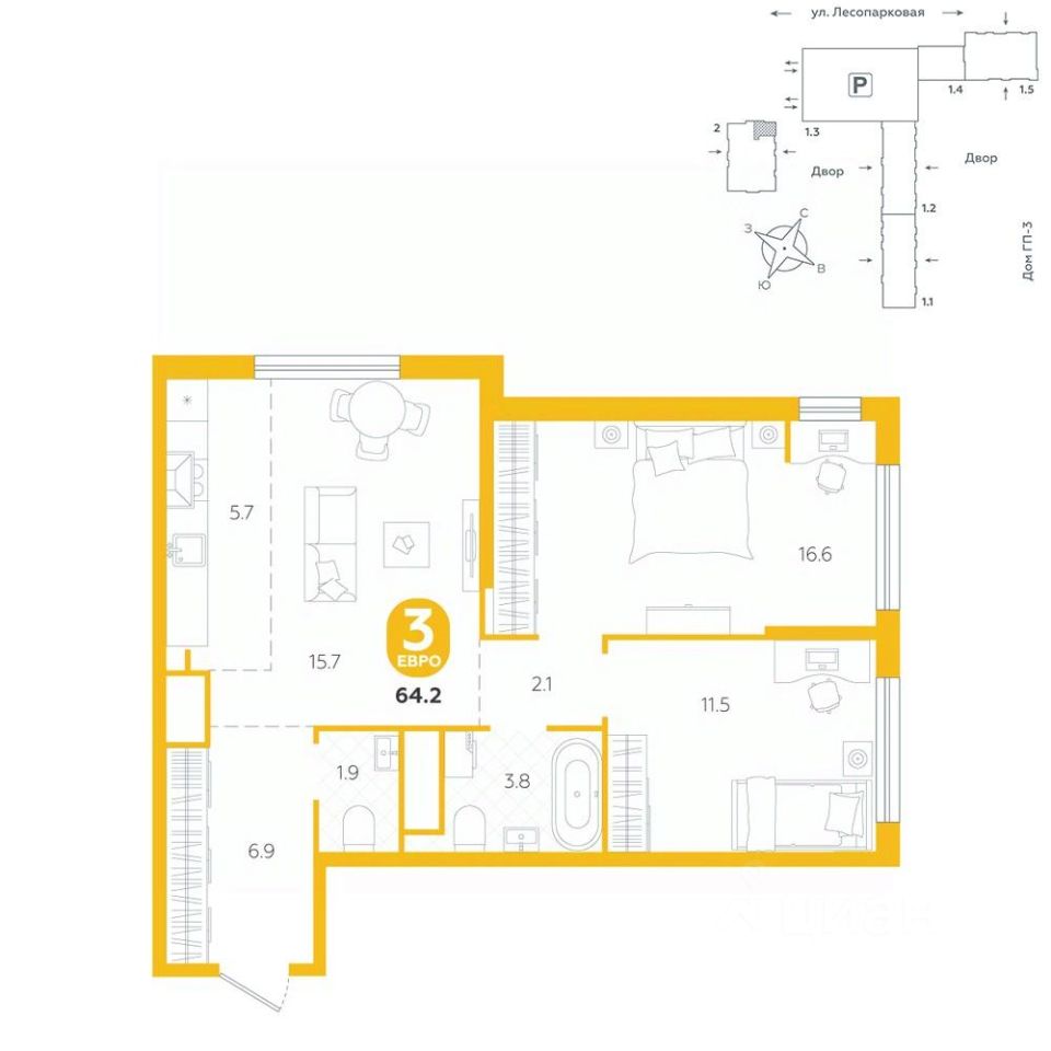 Квартира располагается в ГК "Чистые Пруды" от "Паритет девелопмент". Это флагманский проект компании в Тюмени.