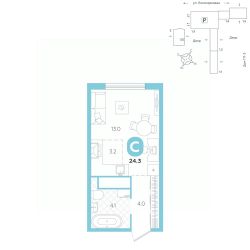 Гармоничные пропорции и большие окна наполняют пространство светом, создавая уютную атмосферу. Умное зонирование позволяет удобно организовать как рабочую, так и жилую зоны, что особенно важно для современных жителей. Санузел спроектирован с учетом всех потребностей: здесь есть ванна и место для стиральной машины. Каждый метр квартиры используется с максимальной эффективностью, что делает эту планировку отличным выбором для тех, кто ценит комфорт и удобство.