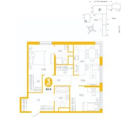 площадь квартиры - 62,6 кв.м