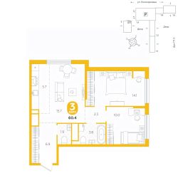 Гармоничные пропорции и большие окна наполняют пространство светом, создавая уютную атмосферу. Умное зонирование позволяет удобно организовать как рабочую, так и жилую зоны, что особенно важно для современных жителей. Санузел спроектирован с учетом всех потребностей: здесь есть ванна и место для стиральной машины. Каждый метр квартиры используется с максимальной эффективностью, что делает эту планировку отличным выбором для тех, кто ценит комфорт и удобство.