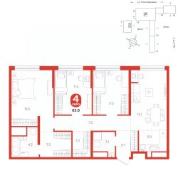 площадь квартиры - 85,6 кв.м