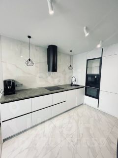 Гармоничная комфортная планировка: большая кухня-гостиная-столовая 23 кв.м., спальни правильно кваратной формы от 14кв.м. В квартире выполнен современный ремонт из качественных строительных материалов. На полу в коридоре и в кухне керамогранит, в спальнях ламинат высокого класса износостойкости, совершенно не боится воды, все стены под покраску, натяжные потолки с точечным освещением. В квартире имеется два сан узла, а так же прачечная комната, все облицовано керамогранитом. Заменены все редукторы и счетчики на импортные, стоит система протечки воды с автоматическим перекрытием Нептун (датчики установлены на всех мокрых точках), установлен водонагреватель на 50 литров Electrolux. Мебель и техника в кухне-гостиной в светло-темных тонах, в одном стиле. Встроенная кухонная техника хорошего качества. Посудомоечная машина, варочная панель, духовой шкаф - производитель Haier. Встроенный холодильник, микроволновая печь, вытяжка - производитель Maunfeld . Установлена система многоступенчатой отчистки воды Гейзер.