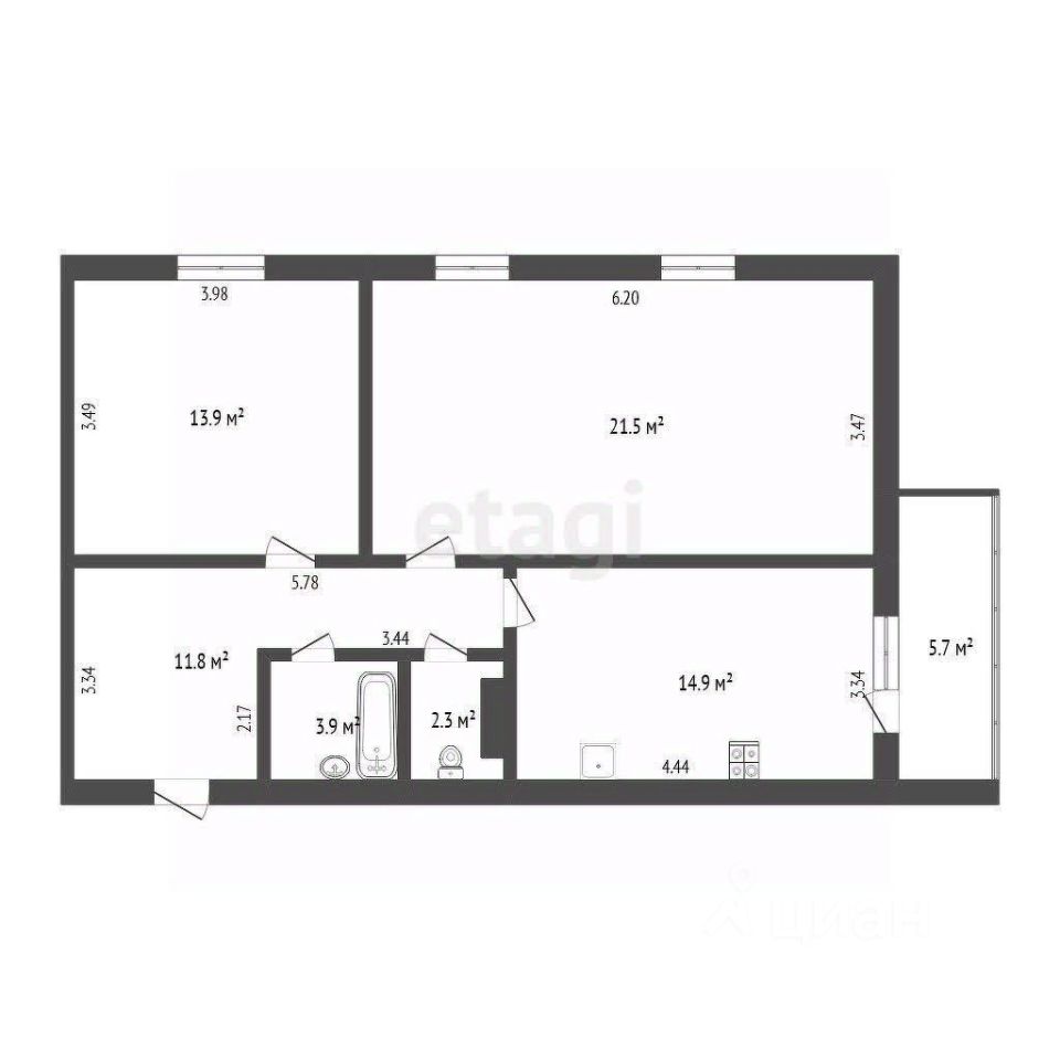 водонагреватель. Прекрасная площадь 68 кВ.м., 7 этаж, с которого