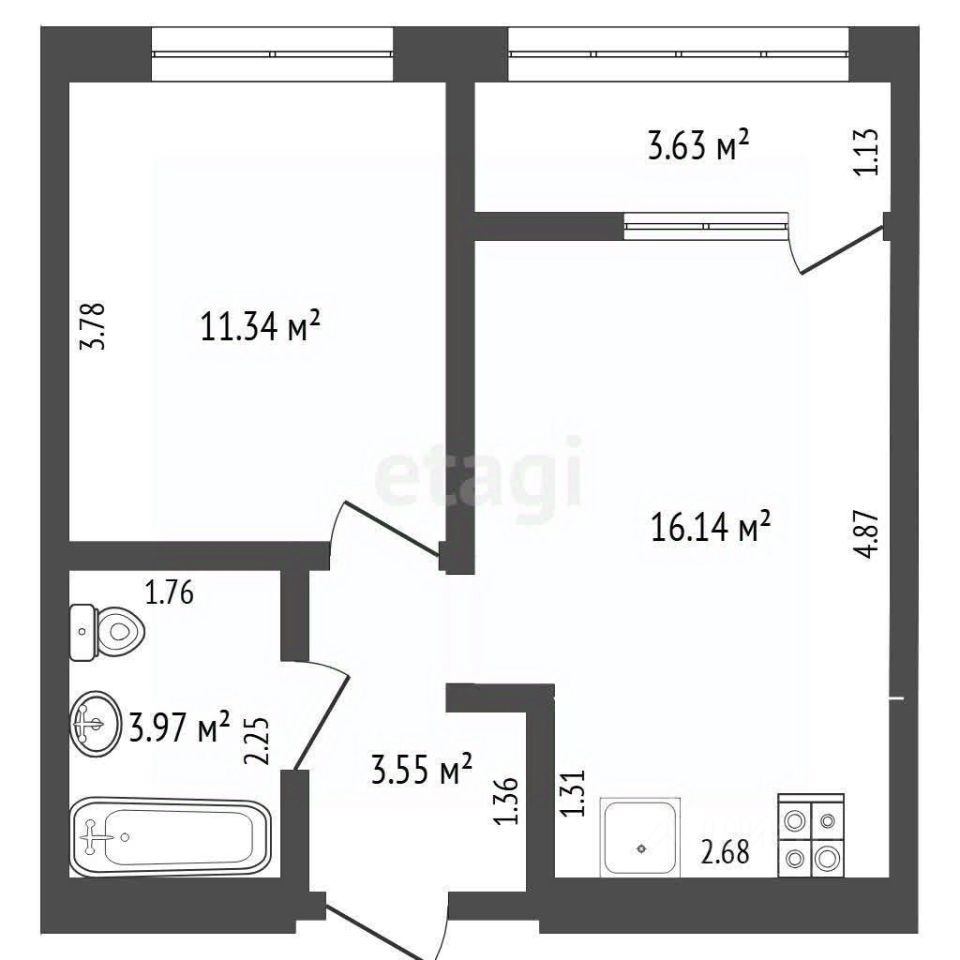Планировка включает кухню-гостиную площадью 15 кв.м с выходом на лоджию (3,6 кв.м), спальню 11,3 кв.м, санузел 3,9 кв.м и коридор 3,5 кв.м с нишей под гардероб. Лоджию можно присоединить к кухне-гостиной, увеличив полезное пространство. Квартира подходит как для комфортного проживания, так и для инвестиции — состояние позволяет быстро завершить отделку под свои предпочтения.