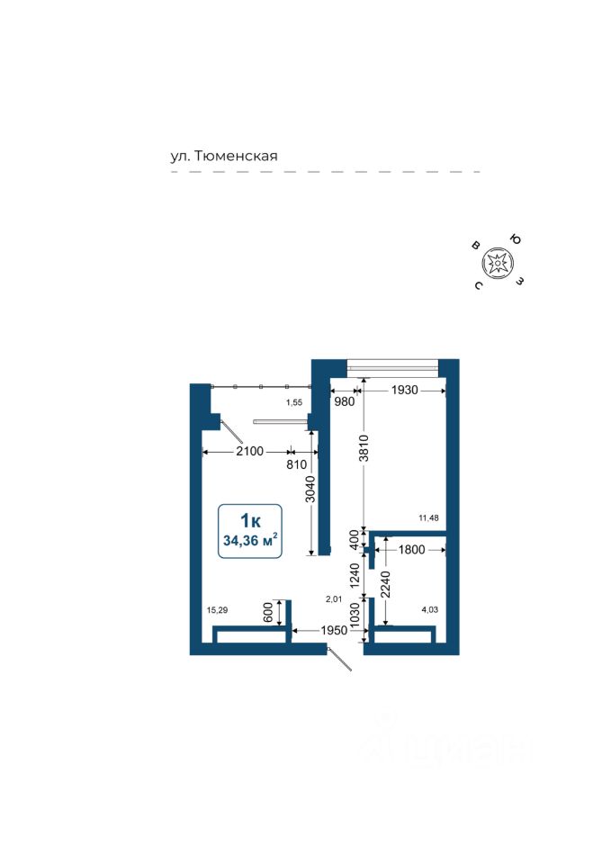 Общая площадь34,36 м²