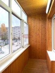 Балкон застеклен, обшит евровагонкой, на него выведено освещение.