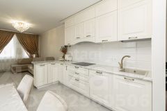 Продается просторная трехкомнатная квартира в мкр. Док, который расположен по соседству с центральной частью города Тюмени. В квартире выполнен современный ремонт: при ремонте использованы только качественные материалы и установлена отличная мебель.Функциональная планировка включает просторную кухню гостиную площадью 26 кв.м. и три комнаты, одна из которых представлена как мастер спальня со своей гардеробной. При продаже частично остается мебель по договоренности.Дом имеет закрытую дворовую территорию и расположен рядом с рекой Турой. В шаговой доступности находится вся доступная среда для комфортного проживания, неподалеку расположена школа и детский сад, поликлиника 2, а также ряд организаций торговли и сервиса. Рядом с домом находится остановка общественного транспорта откуда ходят ряд маршрутов общественного транспорта.