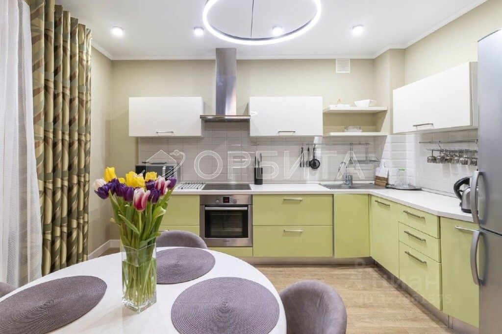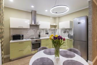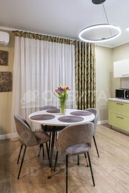 К вашему вниманию предлагается стильная и уютная квартира формата 3+ с продуманной планировкой: кухня-гостиная, три спальни и гардеробная. В квартире останется дорогой кухонный гарнитур GIULIA NOVARS (стоимость около 700 тысяч рублей) и качественный диван от фабрики "8 марта". Ремонт выполнен в современном эко-стиле с использованием качественных материалов, включая японскую сантехнику. Высота потолков 2,72 метра, создающая ощущение простора.