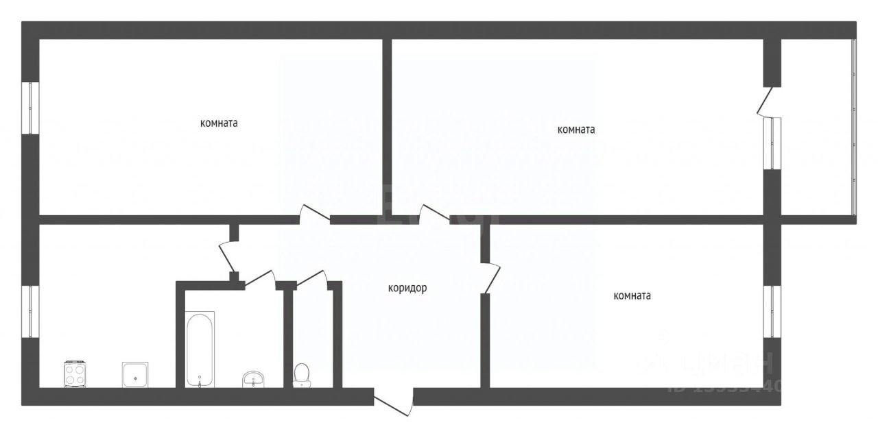 Объект отличается удобной и практичной планировкой типа "распашонка", где изолированные комнаты обеспечивают комфортное проживание и уединение для всех жильцов.