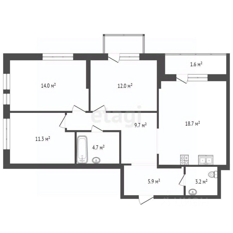 Продается просторная 3-х комнатная квартира 81,8 кв.м.: кухня-гостиная, 3 изолированные комнаты, вместительная прихожая с двумя нишами под большой шкаф и два санузла.