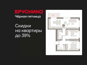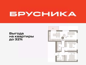 Квартира с кухней-гостиной и двумя спальнями в кварталах "На Минской". Особенности планировки: второй санузел, вид во двор, предчистовая отделка, балкон.