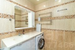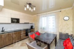 Квартира выполнена в современном классическом стиле с высококачественной отделкой. На кухне установлен новый гарнитур с встроенной техникой, а столешница из искусственного камня добавляет изысканности. Здесь есть обеденный стол, за которым с удовольствием будут собираться ваша семья и друзья.