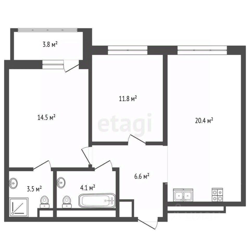 Просторная планировка: кухня-гостиная 20,4 кв.м, спальня 14.5 кв.м и 11.8 кв.м видовая лоджия 3.8 кв.м.! Солнечная сторона, прекрасный вид во двор!