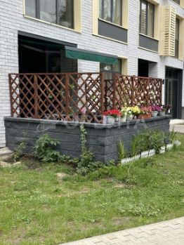 - Функциональная планировка: квартира с гардеробной, просторной кухней-гостиной с выходом на террасу (14 м²).