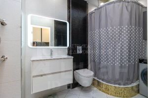 В санузле сделаны выводы для водонагревателя, остается стиральная машина LG , зеркало с подсветкой и от запотевания, потолок разноуровневый с поэтапной подсветкой.