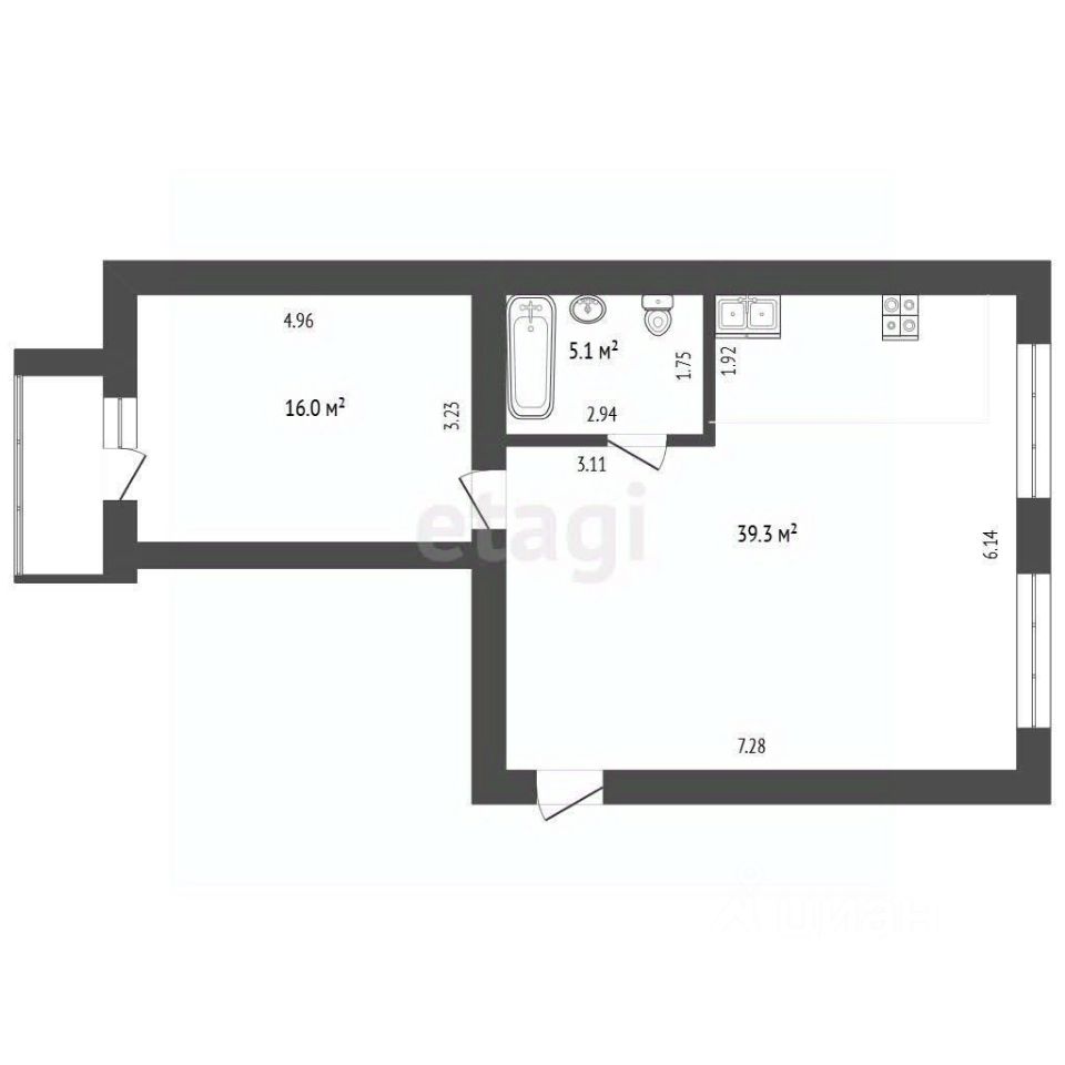 Общая площадь 59.8 м² — свобода даже для семьи с ребёнком.