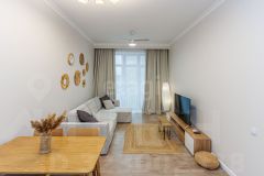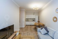 Квартира общей площадью 45,6 кв.м. отличается впечатляющей высотой потолков в 3 метра, что создает ощущение простора и свободы. Сердцем квартиры является функциональная кухня-гостиная площадью 20 кв.м., идеально подходящая для комфортного отдыха и приема гостей.