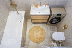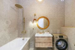Особое внимание уделено санузлу, отделанному керамогранитом различных форматов и оттенков, что создает гармоничное и стильное пространство.