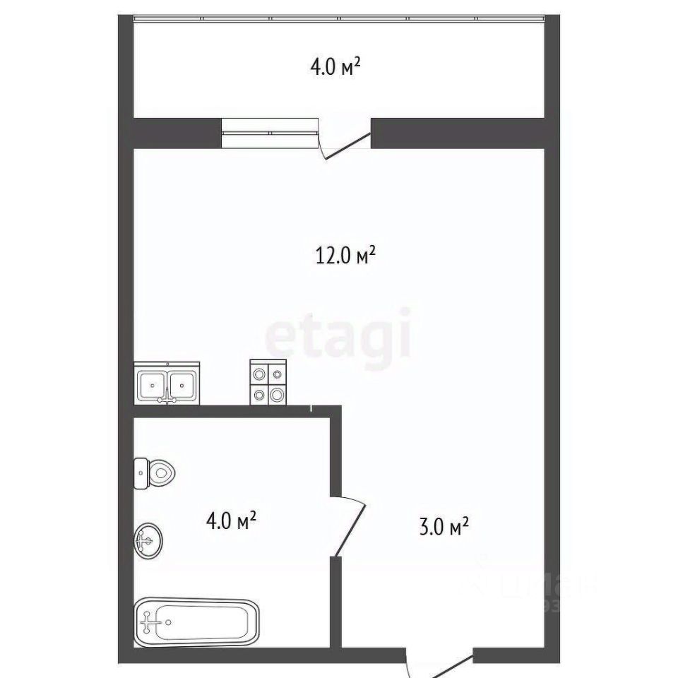 Простор и свет: Площадь 24.4 кв.м., высокий этаж, панорамные окна.