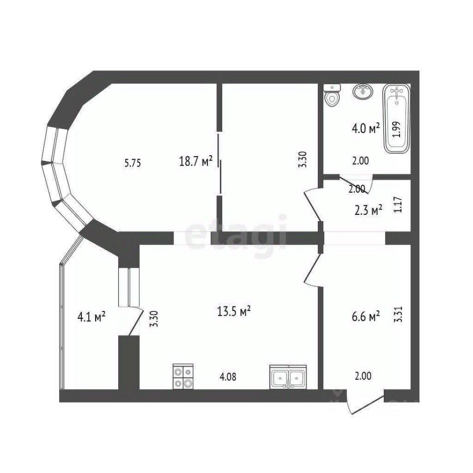 * сан. узел совмещён (4 м2).