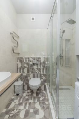 * санузел - плитка, встроенная душевая кабинка