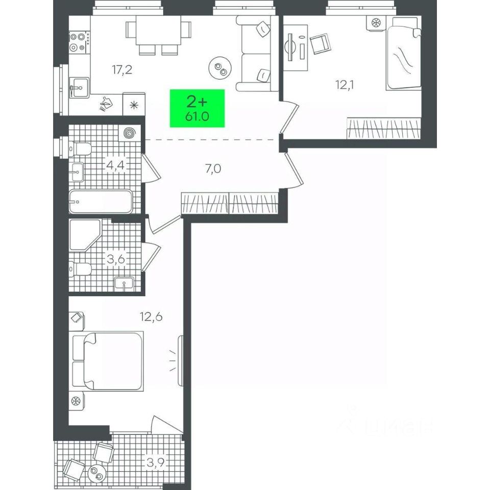 Продаётся 2-комнатная квартира в строящемся доме (3-В6.2 (Малкова, 15)), срок сдачи: III-кв. 2026, общей площадью 61.08 кв.м., на 4 этаже. Компания 4D приступила к строительству нового жилого комплекса "Гранд квартал". Новый ЖК находится в зеленой зоне Калининского района, южнее микрорайона Тюменская слобода.