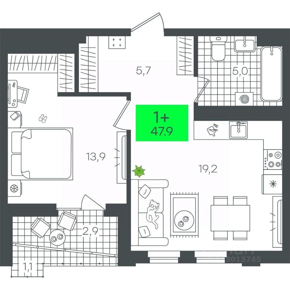Продаётся 1-комнатная квартира в строящемся доме (Д5.2 (Малкова, 5)), срок сдачи: III-кв. 2026, общей площадью 47.98 кв.м., на 9 этаже. Компания 4D приступила к строительству нового жилого комплекса "Гранд квартал". Новый ЖК находится в зеленой зоне Калининского района, южнее микрорайона Тюменская слобода.