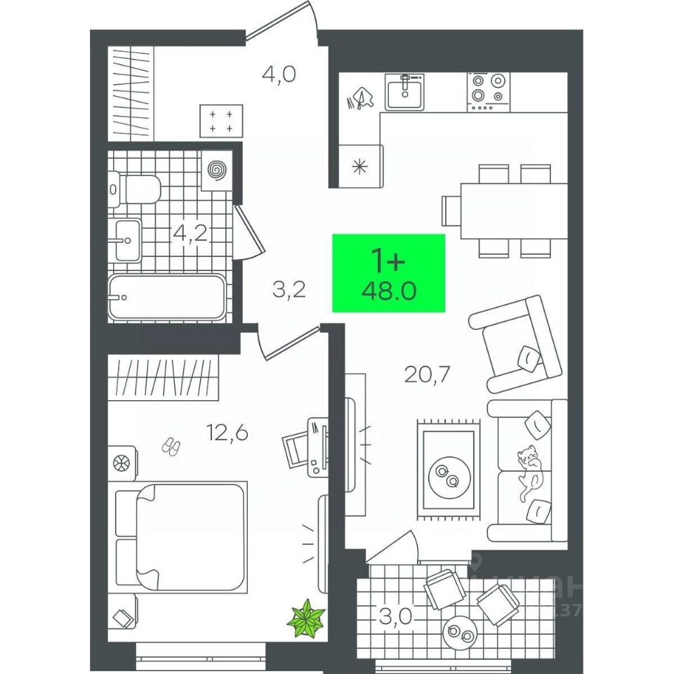 Продаётся 1-комнатная квартира в строящемся доме (1-Д3.2 (Глебова, 10)), срок сдачи: III-кв. 2026, общей площадью 48.01 кв.м., на 17 этаже. Компания 4D приступила к строительству нового жилого комплекса "Гранд квартал". Новый ЖК находится в зеленой зоне Калининского района, южнее микрорайона Тюменская слобода.