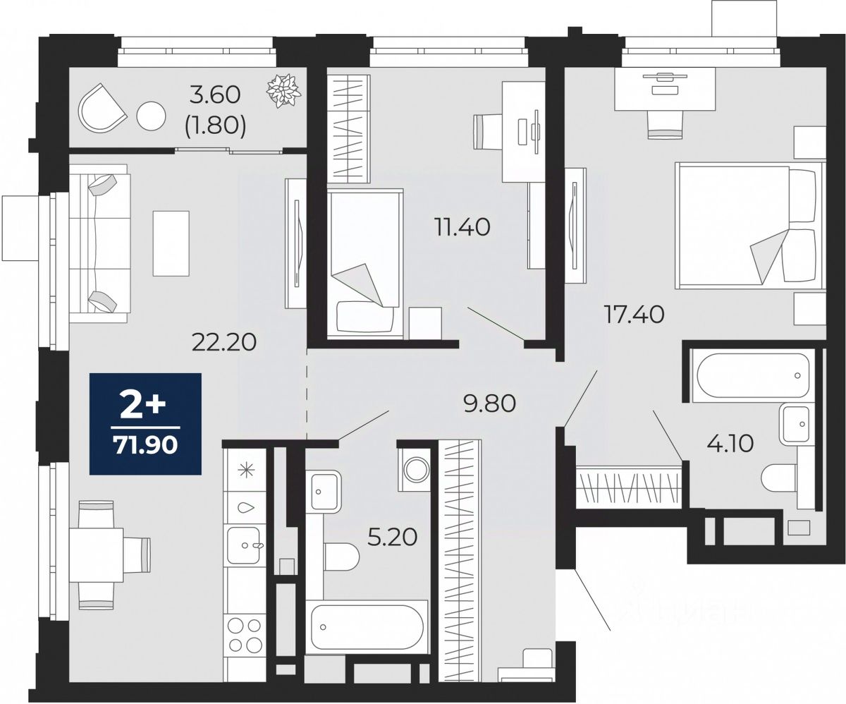 Просторная 2-комн. квартира с предчистовой отделкой в ЖК "Айвазовский City" на 11 этаже. Общая площадь: 71.9 кв.м., жилая: 28.8 кв.м., площадь просторной кухни-столовой: 22.2 кв.м. Квартира угловая, идеально подойдет любителям тишины и панорамных видов. В квартире одна лоджия, два совмещенных санузла. Высота потолков 2.72 м.