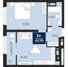 Просторная 1-комн. квартира с предчистовой отделкой в ЖК "Айвазовский City" на 9 этаже. Общая площадь: 42.7 кв.м., жилая: 15.9 кв.м., площадь просторной кухни-столовой: 16.5 кв.м. Все окна выходят на одну сторону. В квартире одна лоджия, один совмещенный санузел. Высота потолков 2.7 м.