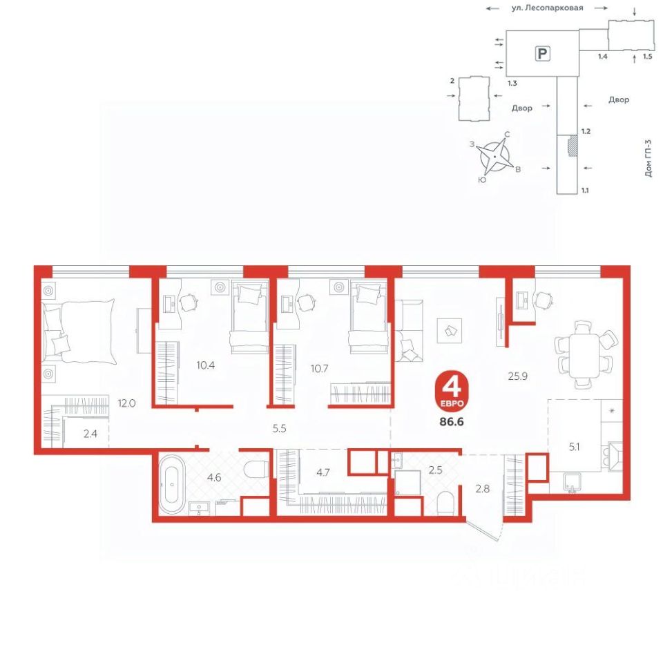 площадь квартиры - 86,6 кв.мГармоничные пропорции и большие окна наполняют пространство светом, создавая уютную атмосферу. Умное зонирование позволяет удобно организовать как рабочую, так и жилую зоны, что особенно важно для современных жителей. Санузел спроектирован с учетом всех потребностей: здесь есть ванна и место для стиральной машины. Каждый метр квартиры используется с максимальной эффективностью, что делает эту планировку отличным выбором для тех, кто ценит комфорт и удобство.