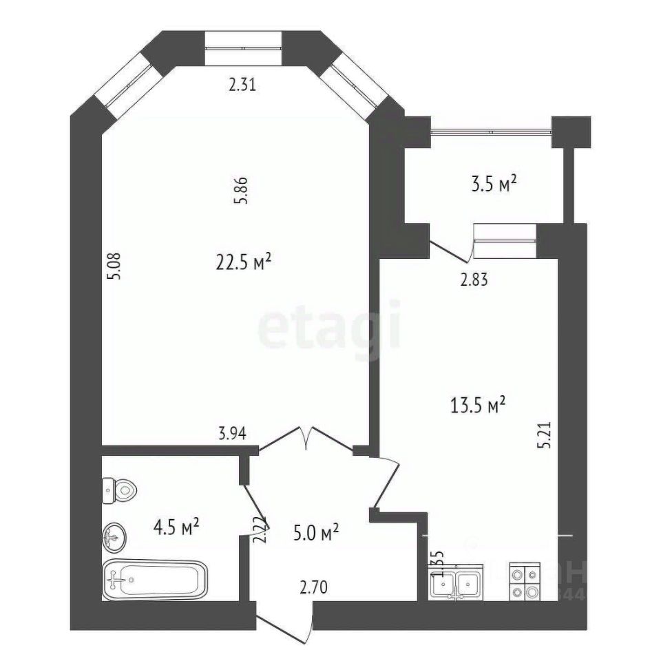 Представляю вашему вниманию уютную и светлую квартиру формата 1+ площадью 45,5 квадратных метров.