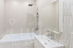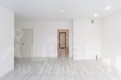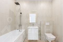 В квартире выполнен качественный современный ремонт с использованием надежных материалов — уложен ламинат высокого класса, на стенах обои под покраску, смонтирован натяжной потолок, а в санузле — практичный керамогранит.