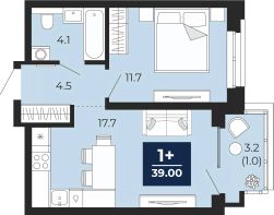 Просторная однокомнатная квартира с предчистовой отделкой в ЖК "Мириады" на 8 этаже. Общая площадь: 39 кв.м., жилая: 11.7 кв.м., площадь просторной кухни-столовой: 17.7 кв.м. Все окна выходят на одну сторону. В квартире один балкон, один совмещенный санузел. Высота потолков 2.7 м.