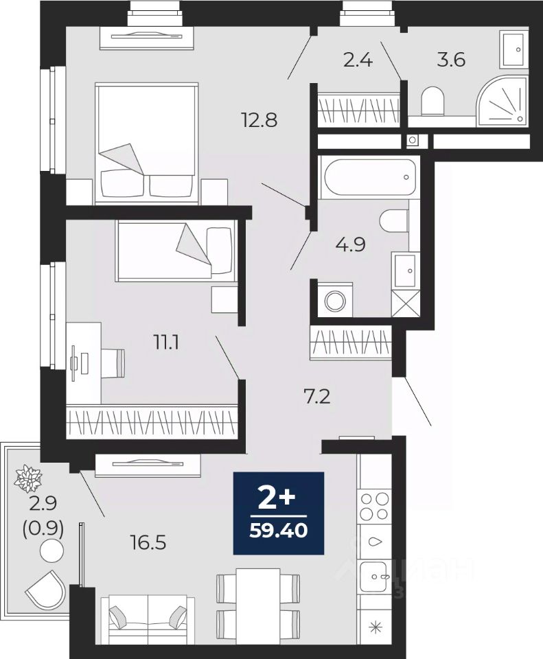 Просторная 2-комн. квартира с предчистовой отделкой в ЖК "Мириады" на 13 этаже. Общая площадь: 59.4 кв.м., жилая: 23.9 кв.м., площадь просторной кухни-столовой: 16.5 кв.м. Угловая квартира, идеально подойдет любителям тишины и панорамных видов. В квартире один балкон, два совмещенных санузла. Высота потолков 2.7 м.