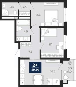 Продается 2-комн. квартира с предчистовой отделкой в ЖК "Мириады" на 11 этаже. Общая площадь: 59.5 кв.м., жилая: 23.9 кв.м., площадь просторной кухни-столовой: 16.5 кв.м. Комнаты изолированные, все окна выходят на одну сторону. В квартире один балкон, два совмещенных санузла. Высота потолков 2.7 м.
