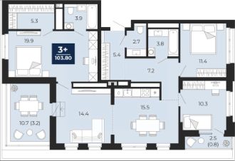 Продается трехкомнатная квартира с предчистовой отделкой в ЖК "Мириады" на 12 этаже. Общая площадь: 103.8 кв.м., жилая: 41.6 кв.м., площадь просторной кухни-столовой: 29.9 кв.м. Квартира без проходных комнат, окна выходят нa три cтopoны дома. В квартире две лоджии, один совмещенный и один раздельный санузел. Терраса представляет собой роскошную зону отдыха для проведение вечеров в кругу семьи и друзей или организация вечеринок. Высота потолков 2.7 м.