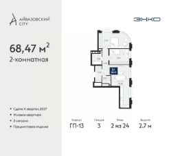 Дом монолитный, многоподъездный, высотой 24 этажа. Квартира находится в 3-й секции в корпусе ГП-13. На этаже 9 квартир. В подъезде 1 пассажирский и 1 грузовой лифт. Окончание строительства - 4 квартал 2027 года. Оформление сделки по договору долевого участия.