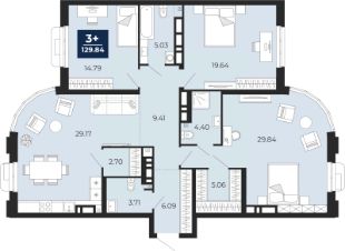 Трехкомнатная квартира с предчистовой отделкой в ЖК "Айвазовский City" на 8 этаже. Общая площадь: 129.84 кв.м. Высота потолков 2.7 м.